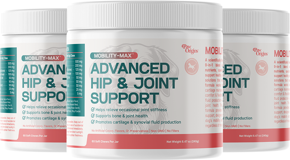 The result is our meticulously crafted and balanced formula, Mobility-Max™ Advanced Hip & Joint Support, which offers optimal & highly bioavailable nutrients to address the problem of cartilage erosion. Revitalizing your dog's joints and mobility.
