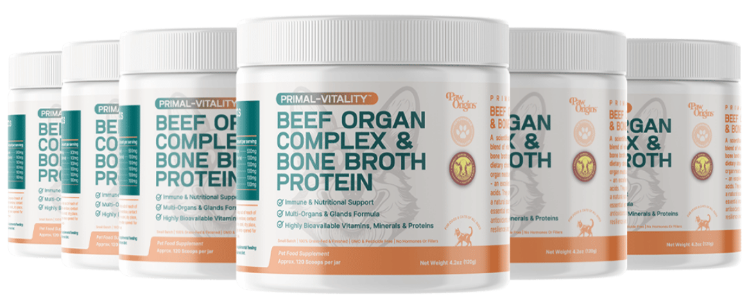 Primal-Vitality™ makes it effortless to enhance your dog's diet, be it kibble, cooked, or raw, by offering these nutritious organs in a convenient, powdered form while maintaining the highest levels of bioavailability and nutrient profile.