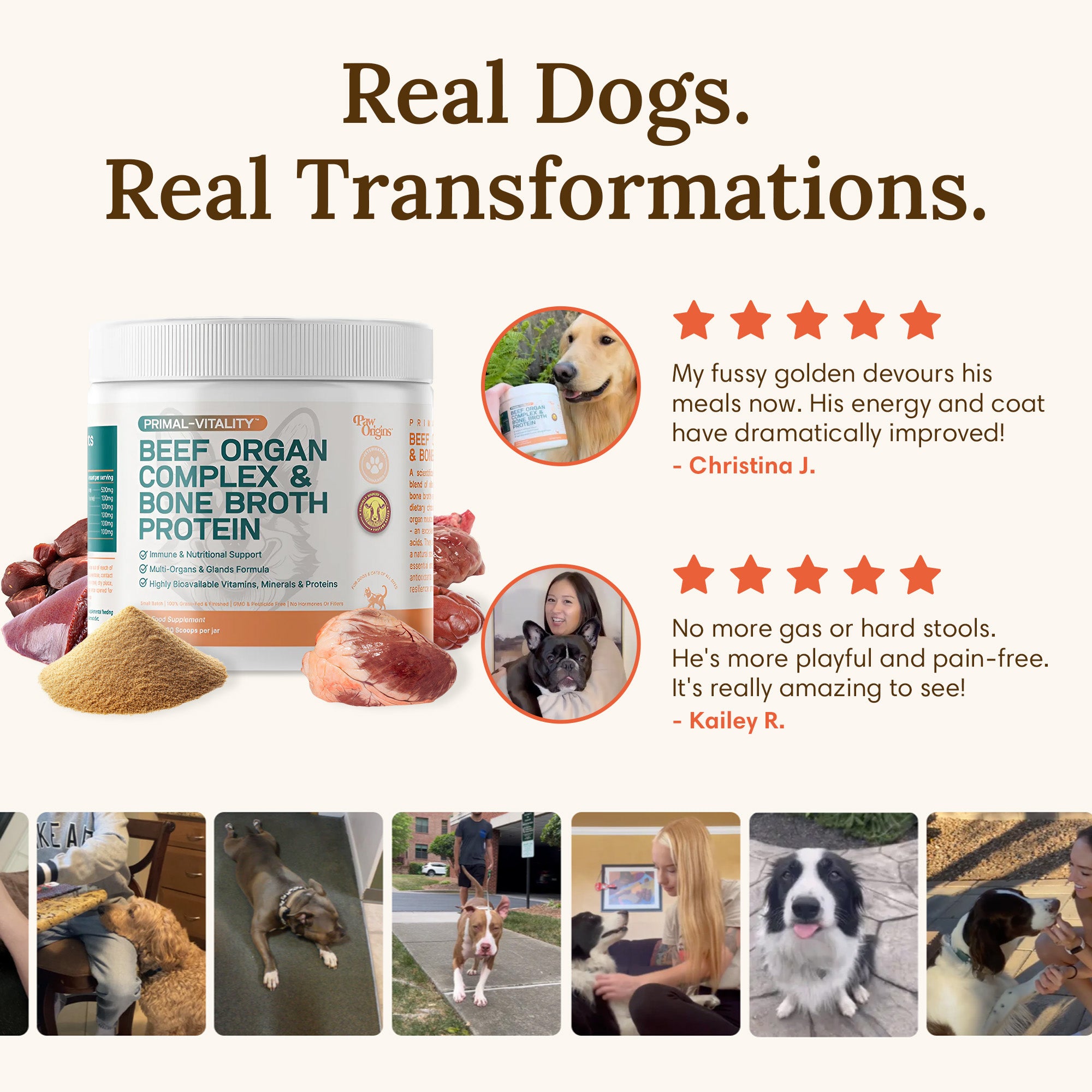 Primal-Vitality™ is a meticulously crafted, hydrolyzed, 6-in-1 blend of vital beef organs including undefatted liver, heart, kidney, pancreas, and spleen.