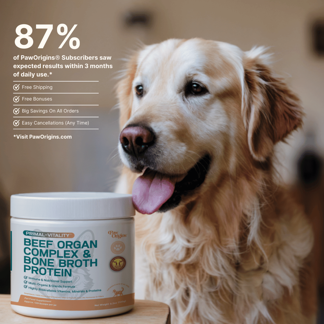 Paw Origins' Primal-Vitality™ Supplement is the answer to bridging the nutritional gap in the modern canine/feline diet. It's excellent for the longevity and vitality of your beloved pet. The formulation uses only the highest quality nutritional sources to make it highly bioavailable for your pet. Give it a try and you'll be amazed by the results.