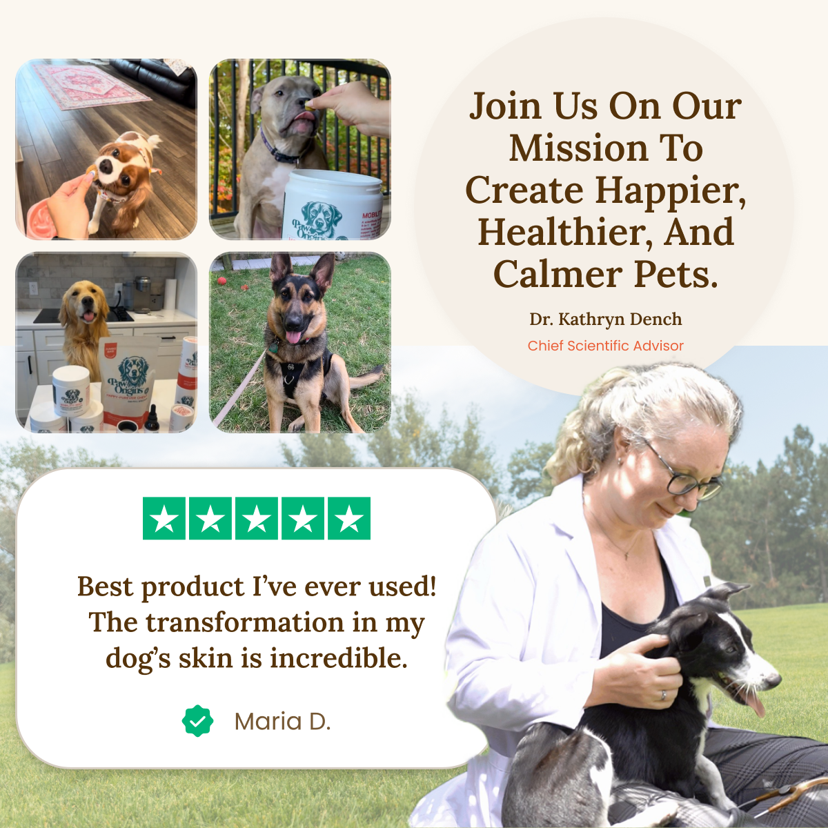 “As with all things natural, it takes time for your pet’s body to fully absorb its benefits. The last thing you want is to give up too soon. Having worked with hundreds of pet parents, the ones that see lasting breakthroughs are the ones that stick to the plan consistently…” Dr. Kathryn Dench