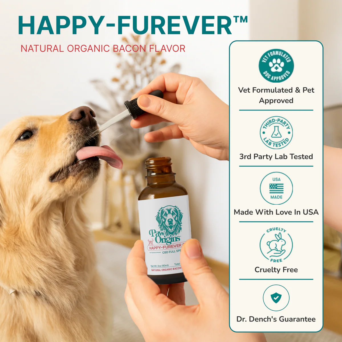 CBD oil supports dogs' well-being by interacting with their endocannabinoid system, which helps regulate mood, pain, inflammation, and immune responses. It is especially beneficial for senior dogs or those with arthritis, easing discomfort and improving mobility. Full-Spectrum (1,000mg) Happy-Furever™ CBD Oil is formulated to reduce inflammation and support joint health, making it ideal for aging pets or dogs recovering from injuries.
