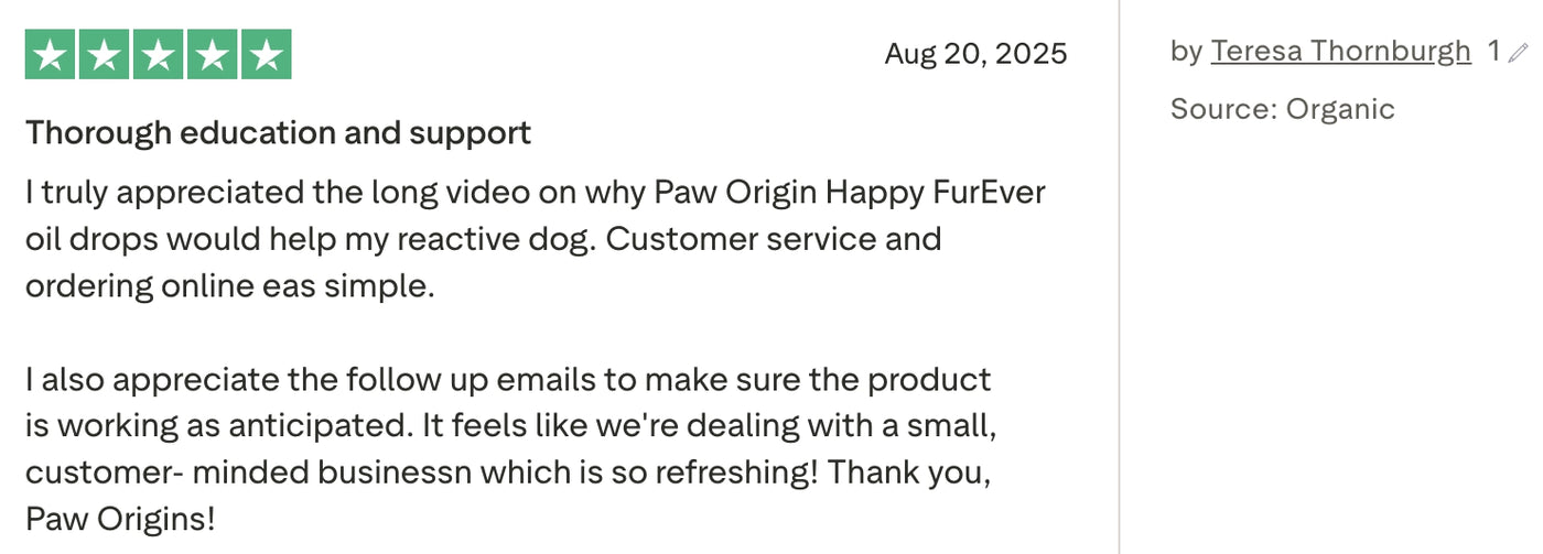 I trust and recommend PawOrigins® to pet parents seeking a holistic solution for their pet's anxiety, arthritis, or other inflammatory conditions. Their third-party testing & clear dosing gives me confidence in its safety & effectiveness.