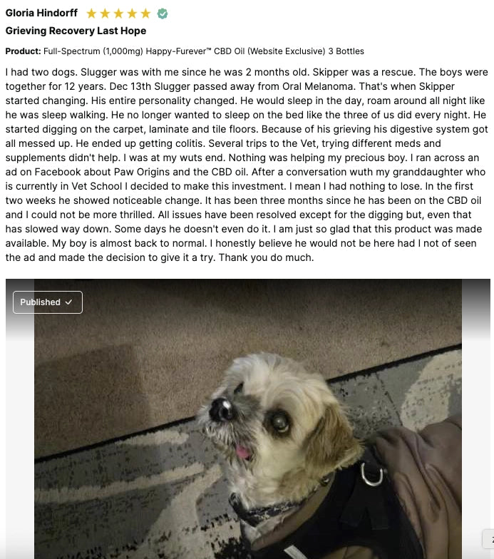 As a holistic veterinarian, I fully endorse PawOrigins® for their ability to help dogs with anxiety & inflammation support. Their full-spectrum products, and third-party testing ensures label accuracy and effectiveness of their products. I consider these essential for quality and trust.