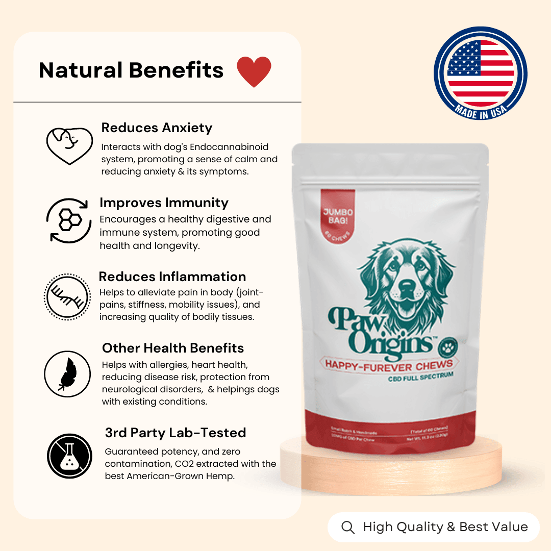 By integrating Happy-Furever™ Hemp Chews for Dogs into your dog's routine, you're not just easing symptoms, you're initiating a profound transformation toward optimal health and vitality.