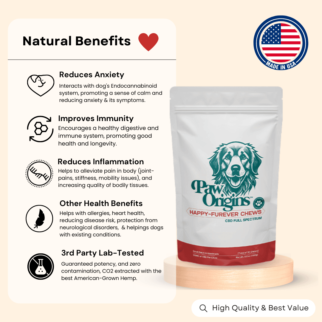 By integrating Happy-Furever™ Hemp Chews for Dogs into your dog's routine, you're not just easing symptoms, you're initiating a profound transformation toward optimal health and vitality.