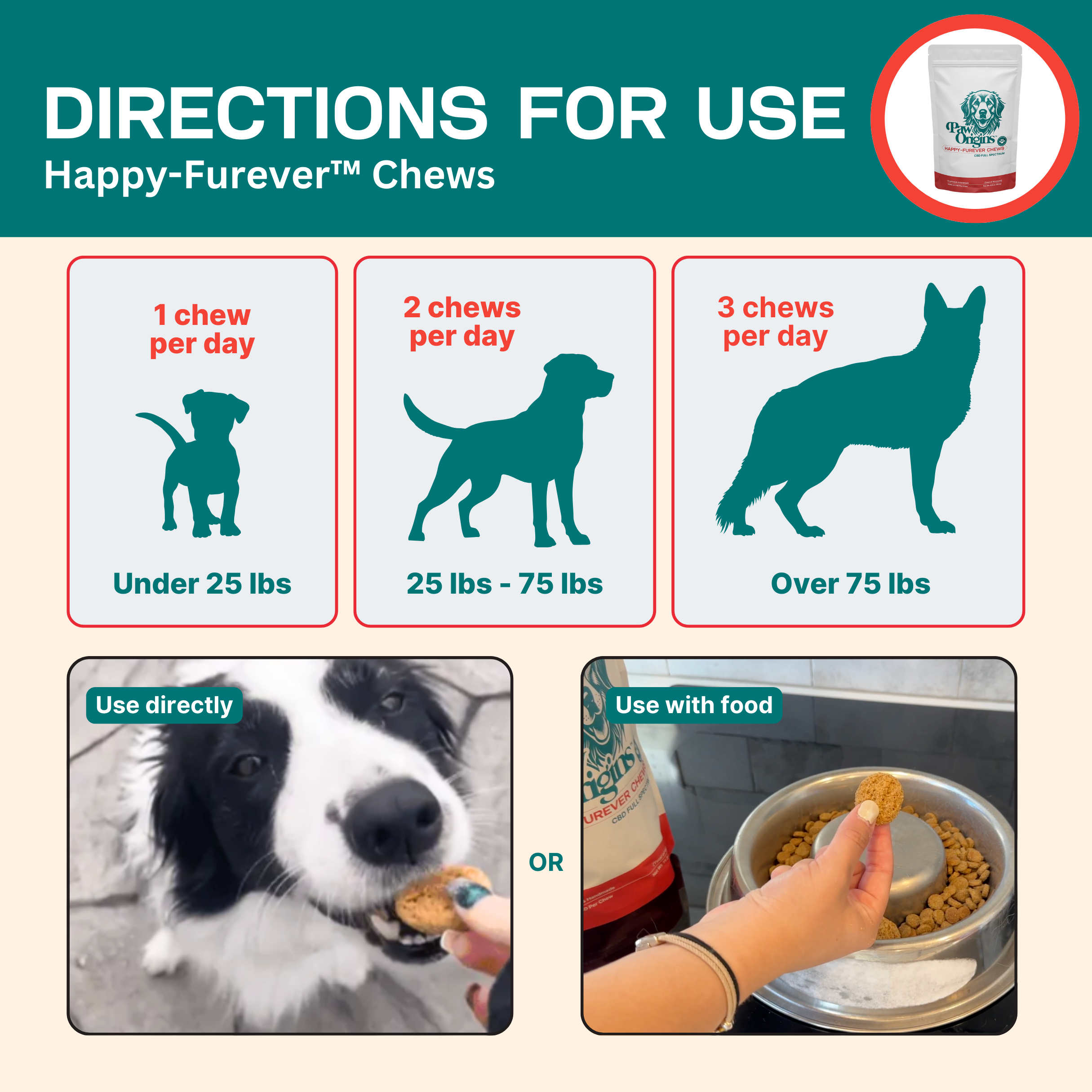 By integrating Happy-Furever™ Chews & Oil for Dogs into your dog's routine, you're not just easing symptoms, you're initiating a profound transformation toward optimal health and vitality.